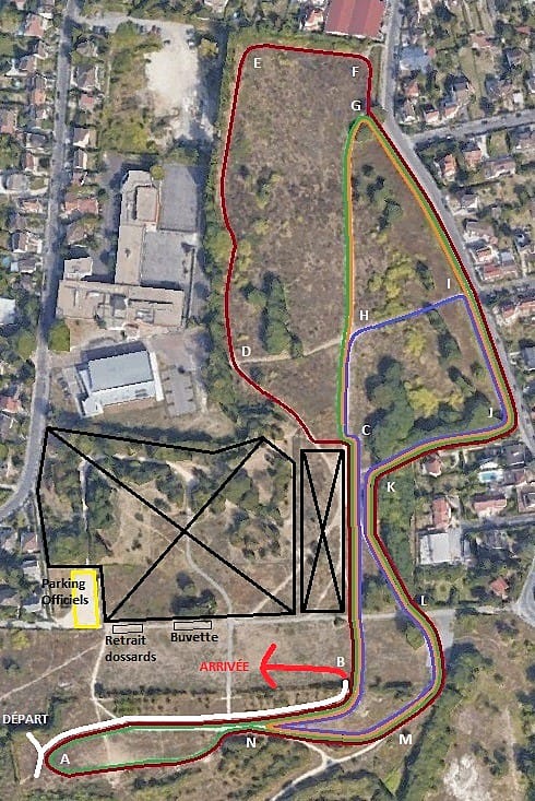 Grande Boucle : B-C-D-E-F-G-I-J-K-L-M-N-A-B (1600m)